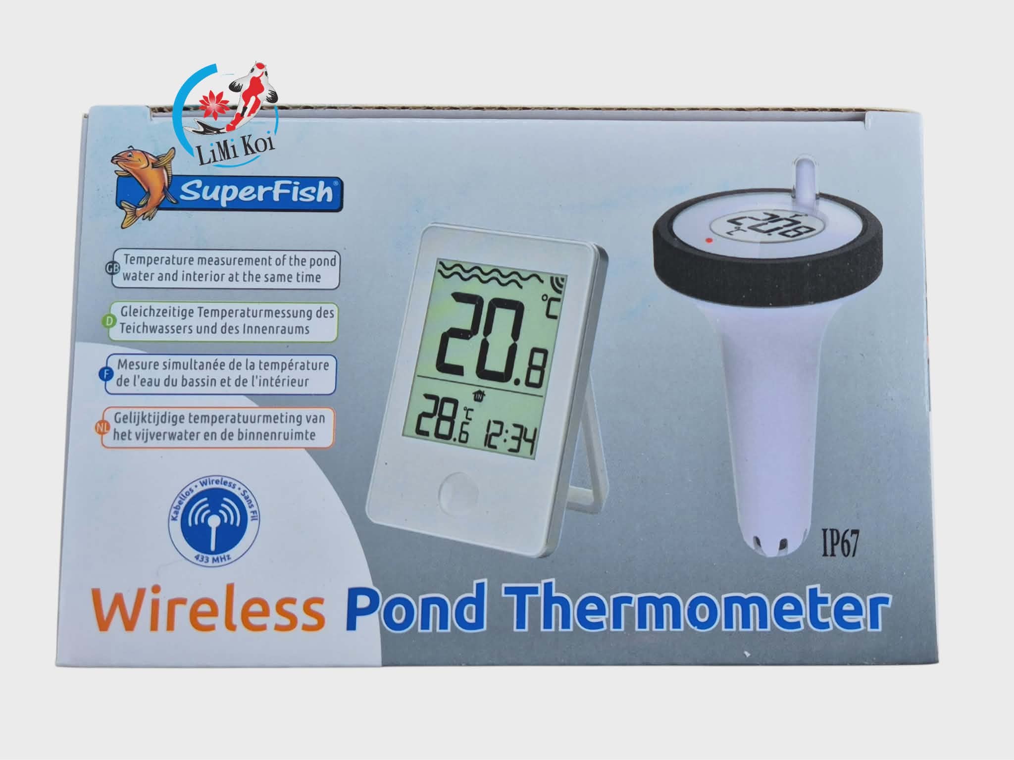 Praktický digitální bezdrátový teploměr pro snadné a pohodlné sledování teploty vody v jezírku. Teplotu lze přehledně odečítat jak na vnitřní bezdrátové jednotce, tak přímo na plovoucím čidle umístěném v jezírku.